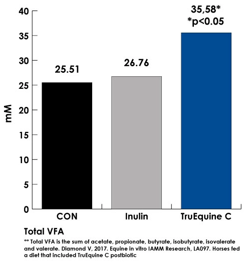 TruEquine® är en naturlig postbiotisk tillsats som ger rätt kombination av metaboliter (aminosyror, vitaminer, kort-kedjiga fettsyror) direkt till grovtarmen där den kan nyttjas av tarmbakterierna för att stötta matsmältning, ledhälsa, immunförsvar samt återhämtning efter träning. TruEquine® har vetenskapligt bevisade effekter för just häst och är ett bra val när man vill främja hälsa och prestation hos sin häst.