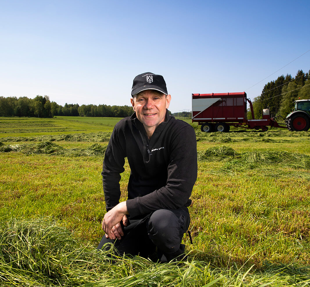 -Vallfodret är motorn i min plånbok. Det är viktigt att få in ett bra grovfoder så att korna mjölkar bra. Ett sådant här år är det jätteviktigt. Att odla bra vall är det billigaste sättet att få mjölk. Men det gäller att förnya sin vall också.