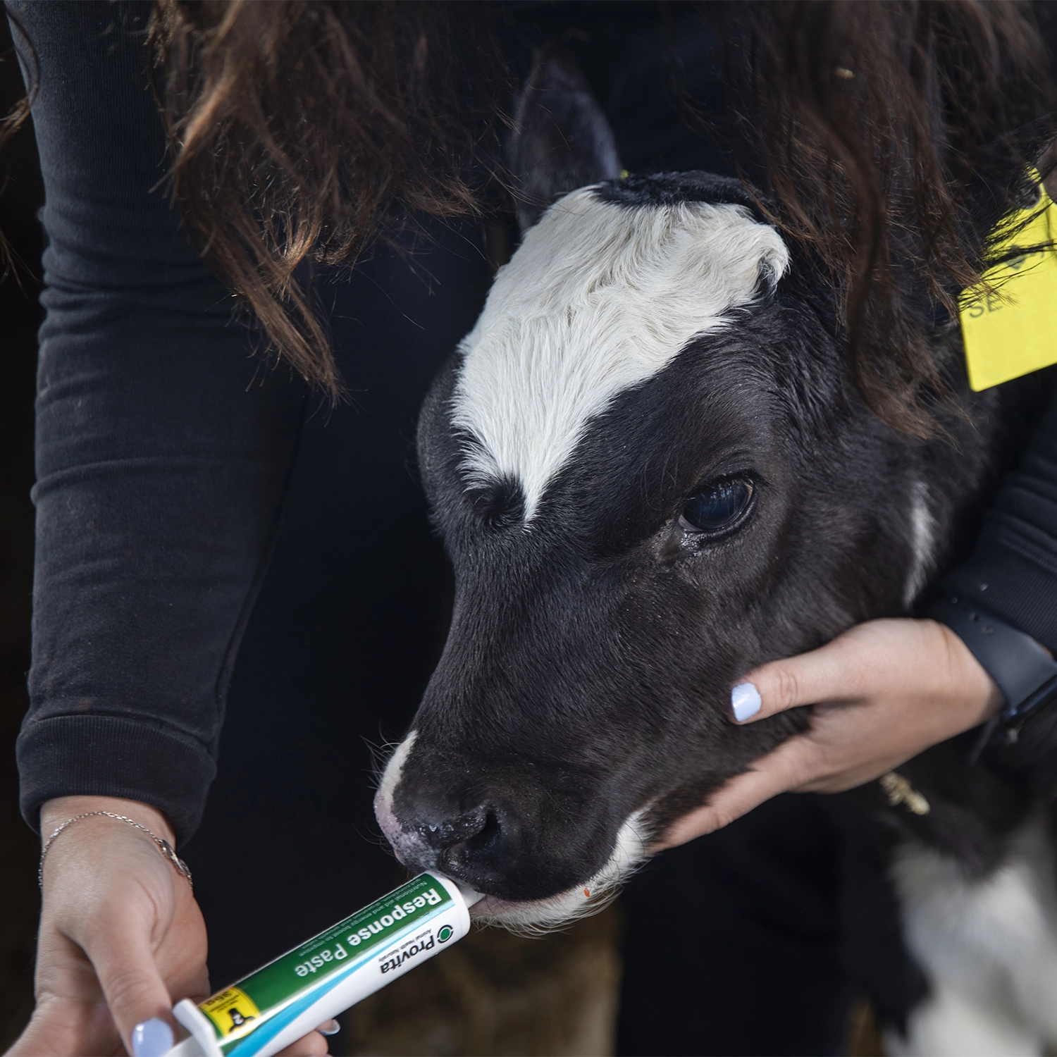 Provita Response Paste tillför energi, naturligt råmjölkspulver, probiotiska bakterier, äggpulver och vitaminer. Allt för att ge nyfödda kalvar den boost som ibland kan behövas hos svaga kalvar som t.ex. inte orkar komma igång att dia eller dricka mjölk. Response paste kan även användas för inköpta kalvar och under perioder av stress som t.ex. vid omgrupperingar.