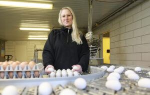 Johanna Åberg driver äggproduktionen Prästtorps Gårdsägg i Vinninga utanför Lidköping. På egen hand, utan medarbetare. Det har hon gjort sedan 2020, då hon bestämde sig