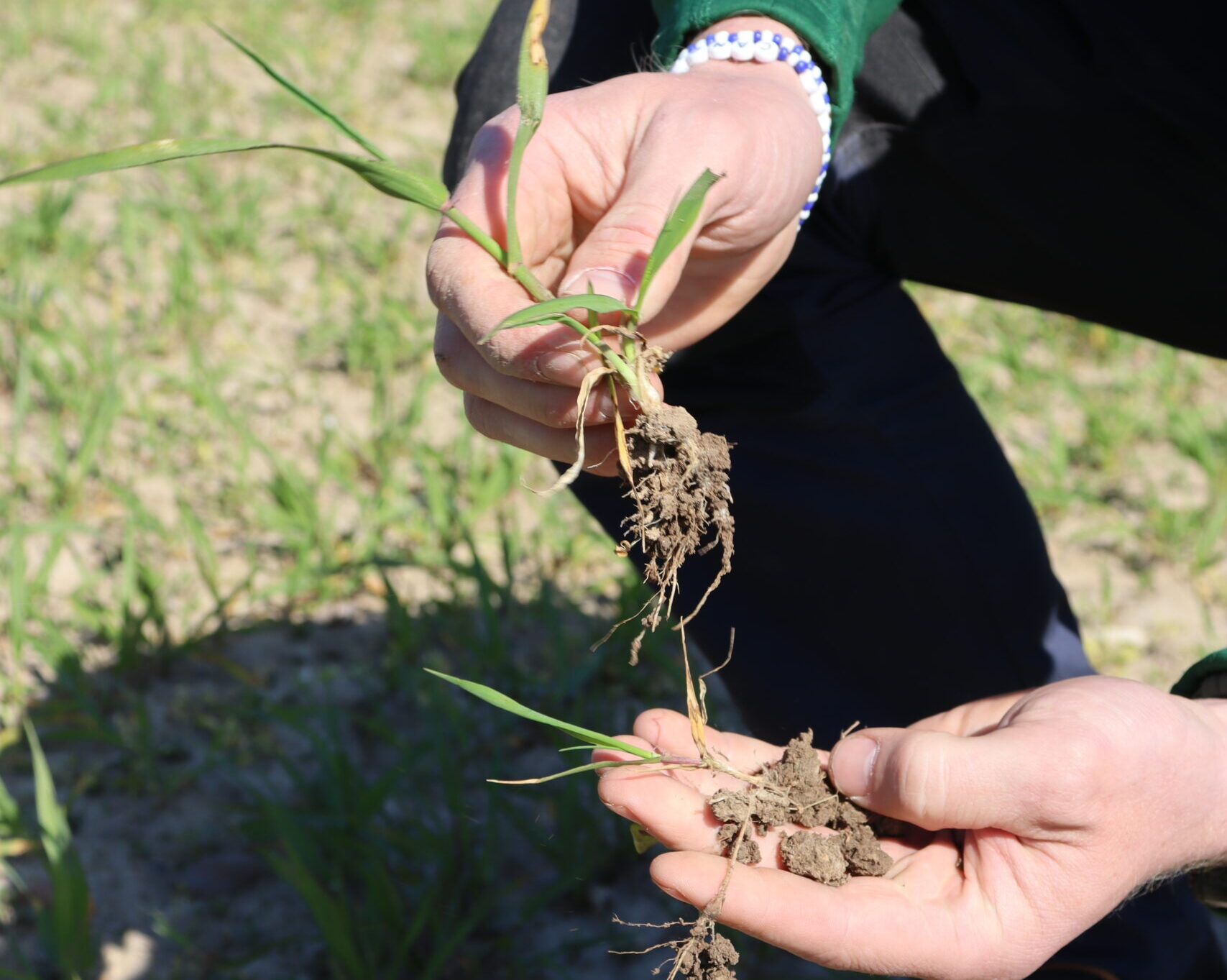 -Prospect har klarat sig något sämre på sandjorden, men rötterna har utvecklats hela perioder och ligger på 10-15 cm på djupet. Det tror vi kan göra att den klarar försommartorkan bättre än den vårsådda grödan. Men det återstår att se. Vi följer med spänning utvecklingen.