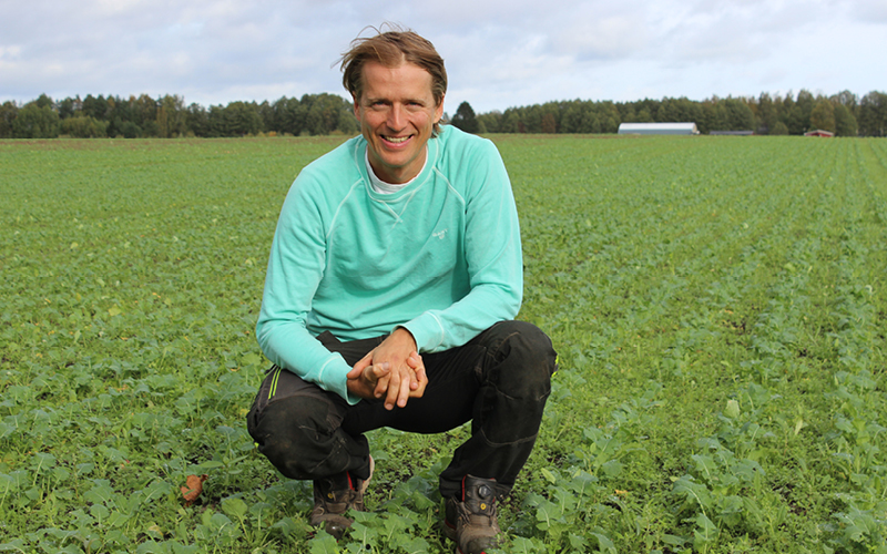 – Eftersom jag odlar ekologiskt, använder jag inga kemiska insatsmedel, säger han. Då måste jag vara smart när det gäller tajmingen – när det gäller exempelvis radhackning och sådd – för att hålla ogräset i schack och så att grödan får möjlighet att växa sig stor.